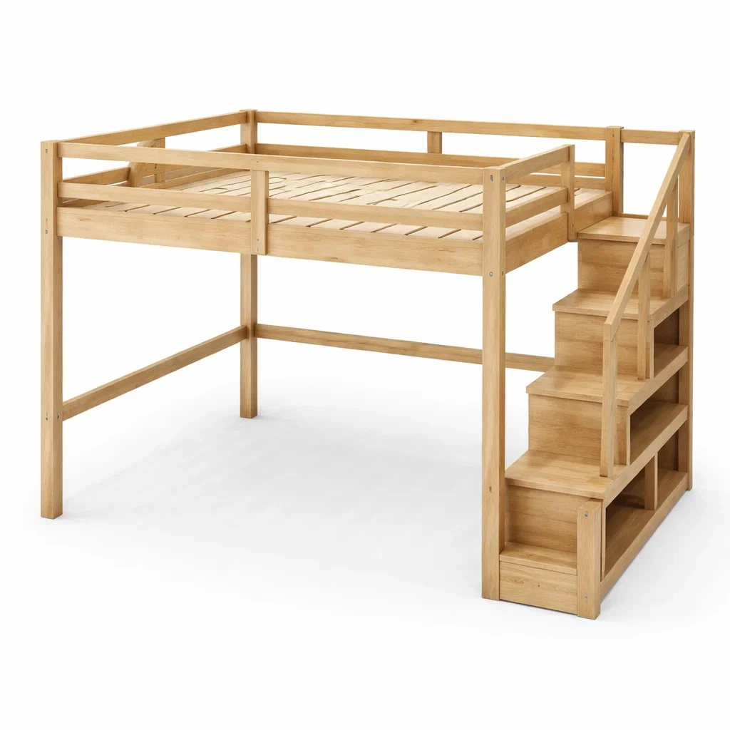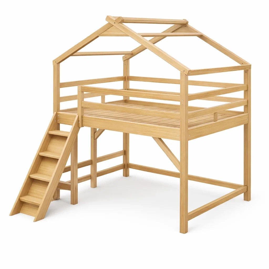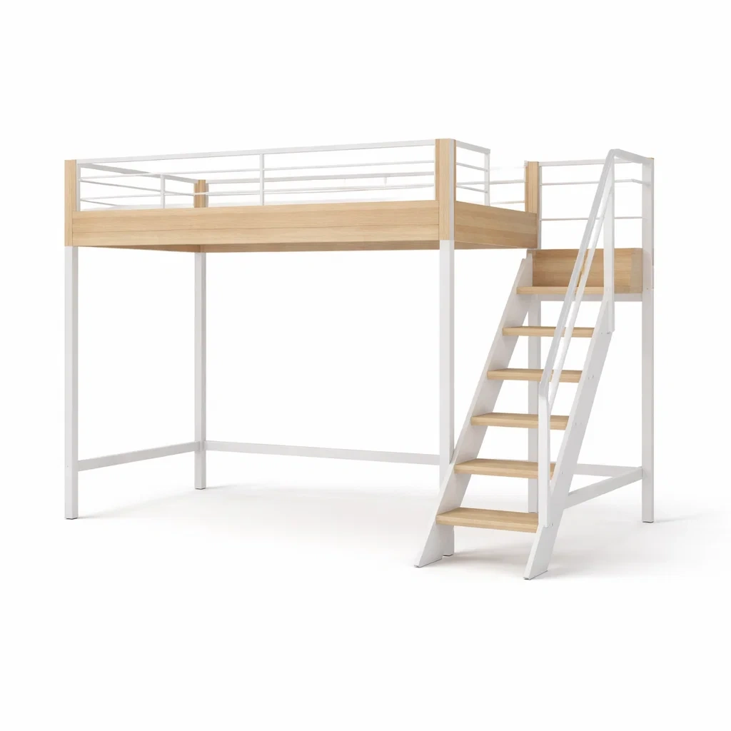 Lit mezzanine pour enfant en métal et bois blanc bois