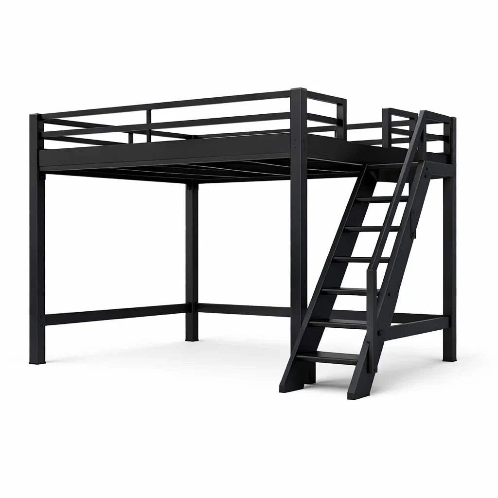 Lit mezzanine en métal noir avec échelle intégrée 200x140x160 cm