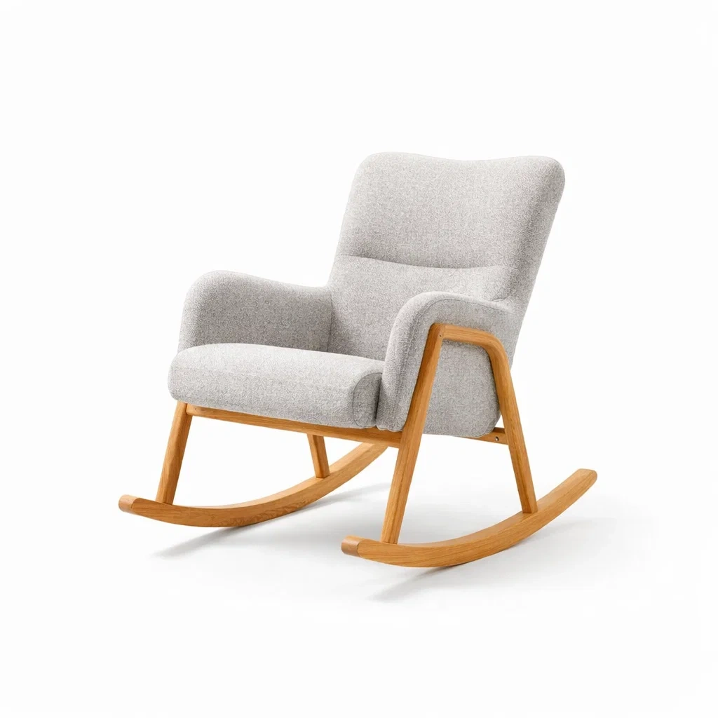 La chaise berçante est conçue avec un tissu en polyester pour le rembourrage et un cadre en bois de chêne solide. Ses dimensions sont de 75 cm de largeur sur 85 cm de profondeur et 101 cm de hauteur.