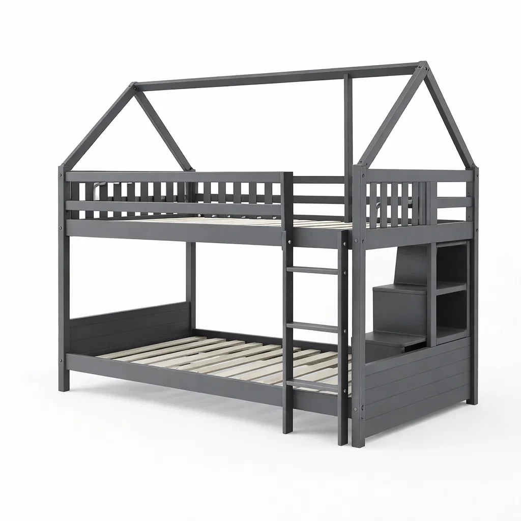 Caractéristiques : Deux niveaux, échelle intégrée, étapes avec stockage intégré